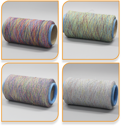 金浩盛紡織—包覆紗包覆紗又稱包纏紗, 是一種新型結構的紗線,它是以長絲或短纖維為紗芯,外包另一種長絲或短纖維紗條。外包紗按照螺旋的方式對芯紗進行包覆。其特點為條干均勻、膨松豐滿、紗線光滑而毛羽少、強力高、斷頭少。 包覆紗多用于要求高彈的針織物,部分用于機織物, 是細薄的毛、麻織物、提花雙....